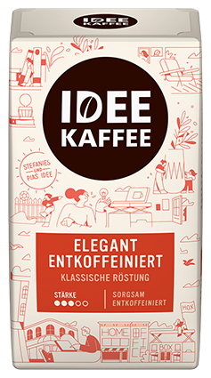 Idee decaffeinated filter coffee is processed just as gently and as noblely composed as all other varieties. It retains the full, aromatic flavor and fine nuances of Idee beans, so that in the end only one thing is really missing: caffeine.
