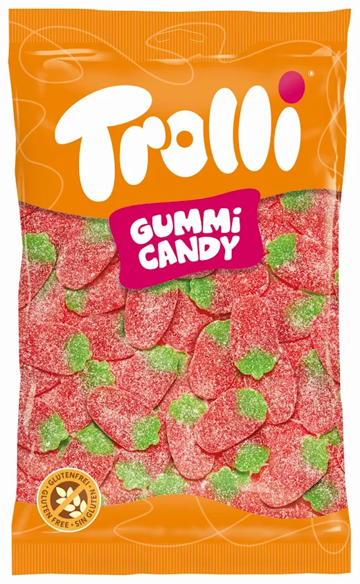 Trolli Sour Strawberries are delicious sugared strawberry sweets shaped like strawberries. Besides being super delicious, they are also gluten-free. Try them now at Five Star Trading Holland!