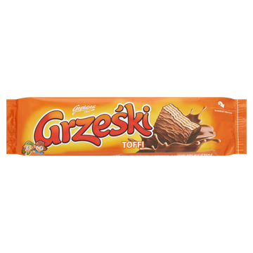 Grzeski Wafels Toffi zijn heerlijke wafels gevuld met een toffeecrème omhult met melkchocolade.