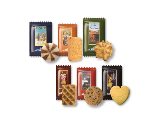 Deze mix bevat: twister, luxe crèmebiscuit, kokosrotsje, koffiewafeltje, choc-chip cookie, boterkoekje in allerlei vormen. Koop je koekjes voordelig bij Five Star Trading Holland. In deze doos zitten 150 individueel verpakte koekjes met een totaal gewicht van 1226 gram.