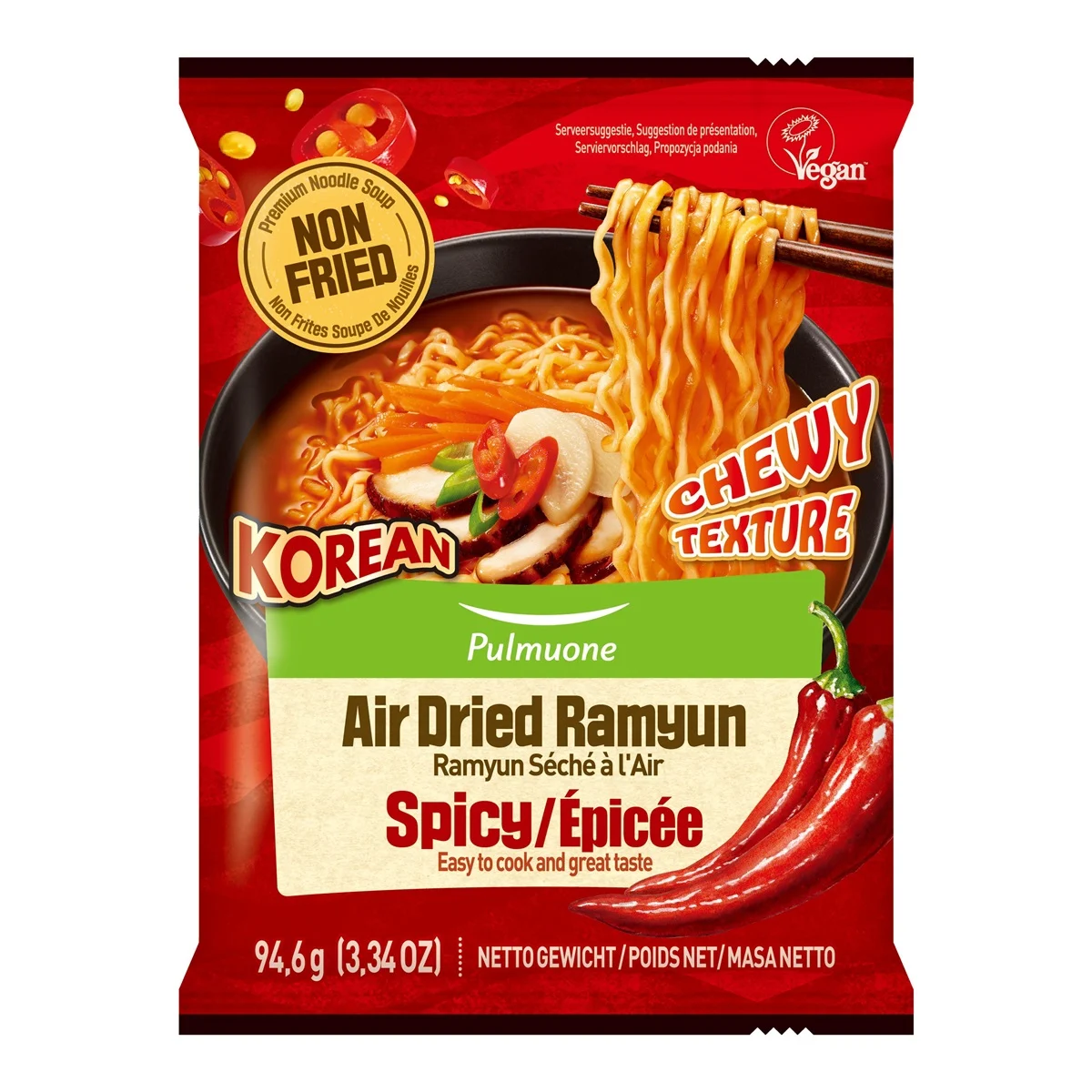 Pulmuone Air Dried Ramyun Spicy zijn luchtgedroogde instantnoedels met een milde smaak. Ze zijn gemakkelijk te bereiden en in een handomdraai klaar. Overigens zijn ze ook heerlijk om groentes zoals prei, paprika of kool aan toe te voegen.
