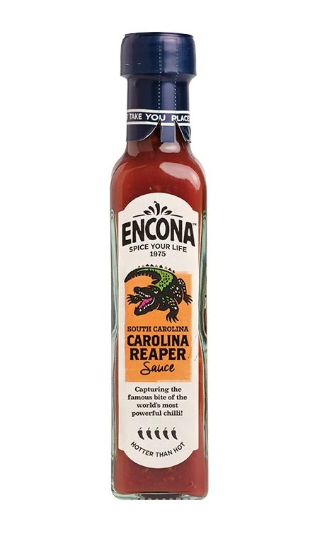 Encona Carolina Reaper Chilli Sauce wordt gemaakt uit een mix van ‘s werelds heetste chilipeper, tomaten en kruiden.Je moet wel wat lef hebben om deze super pittige saus te proberen. Durf jij de uitdaging aan?