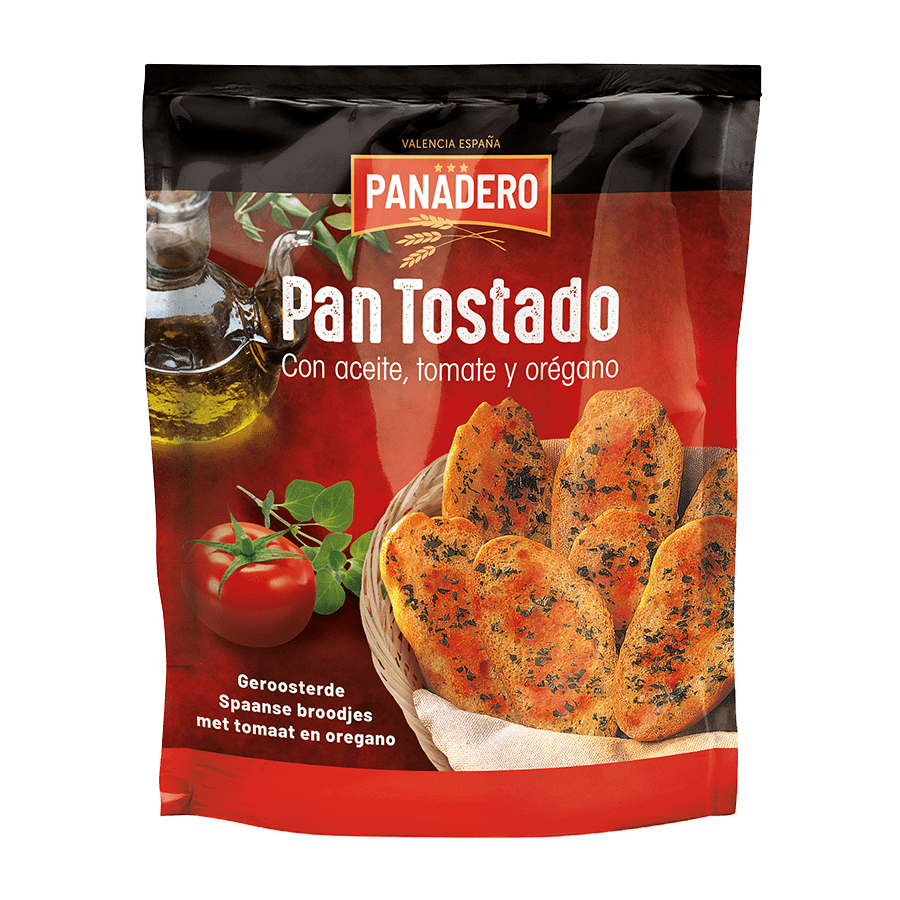 Panadero Pan Tostado Tomato Oregano are Spanish toasted buns topped with olive oil, tomato and oregano. The sandwiches are packed ready-to-eat, so you can serve them straight away as a snack, appetiser, with soup or at the barbecue. Try them now at Five Star Trading Holland!