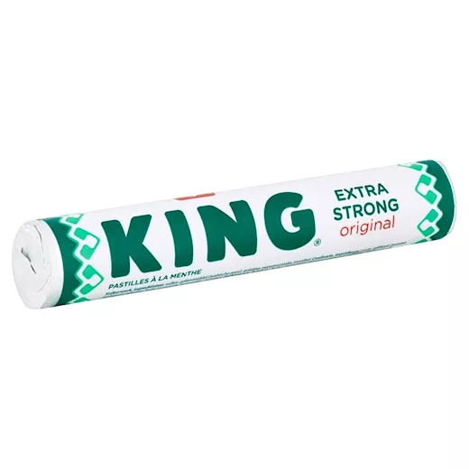 Geniet van de heerlijke King Extra Strong Pepermunt Rollen met zijn extra sterke pepermuntsmaak. De pepermuntjes worden uit de originele, natuurlijke King pepermuntolie gemaakt.