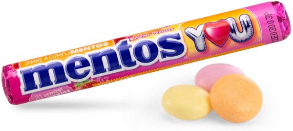 Merk: MentosMentos Fruit rol, de dragees van Mentos in de lekkere fruitsmaken aardbei, sinaasappel en citroen. Verpakt in een rol, bijvoorbeeld handig voor een dagje weg! Bekende fruitsmaken die iedereen lekker vindt.