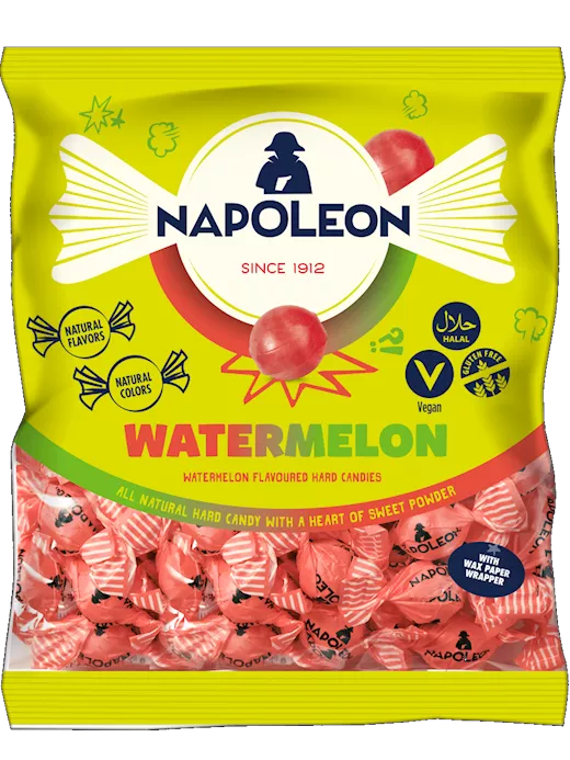 Napoleon Watermelon kogels zijn harde snoepjes met een overheerlijke frisse watermeloensmaak. Ze zijn perfect voor degene die van een fris snoepje houdt.