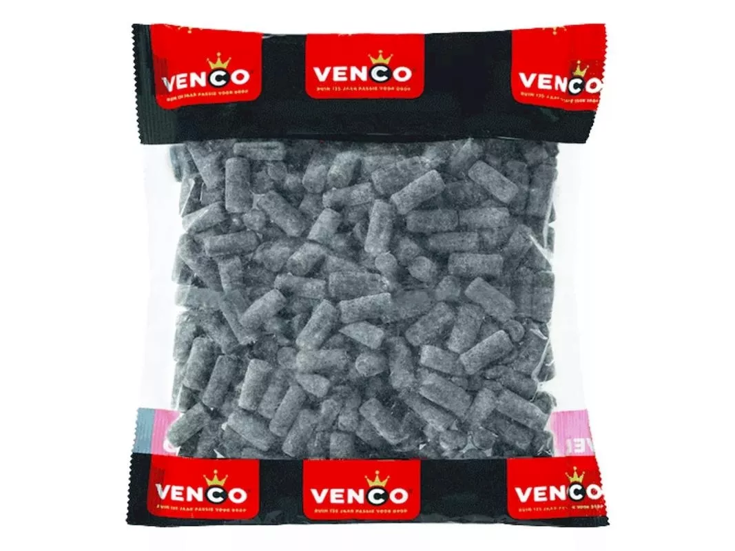 Ingrediënten: Suiker, melado, tarwebloem, glucosestroop, zoethoutwortelextract, geheel gehard kokosvet, verdikkingsmiddel (Arabische gom), salmiakzout, bevochtigingsmiddel (glycerol, sorbitol), kleurstoffen (E153, E150d), gelatine, aroma, zout, plantaardige oliën (kokos, palm), glansmiddel (bijenwas).