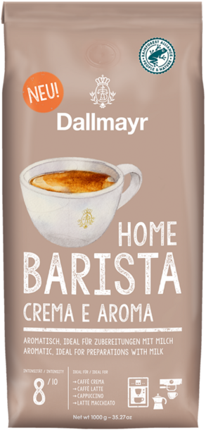 De nieuwe toevoeging aan de Home Barista-familie smaakt krachtig en aromatisch. Geselecteerde koffiebonen uit duurzame teelt worden langdurig voorzichtig donker gebrand. Dankzij de romige structuur is Dallmayr Home Barista Crema e Aroma ideaal voor alle koffiedrankjes met melk.